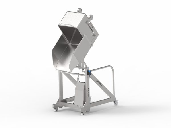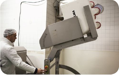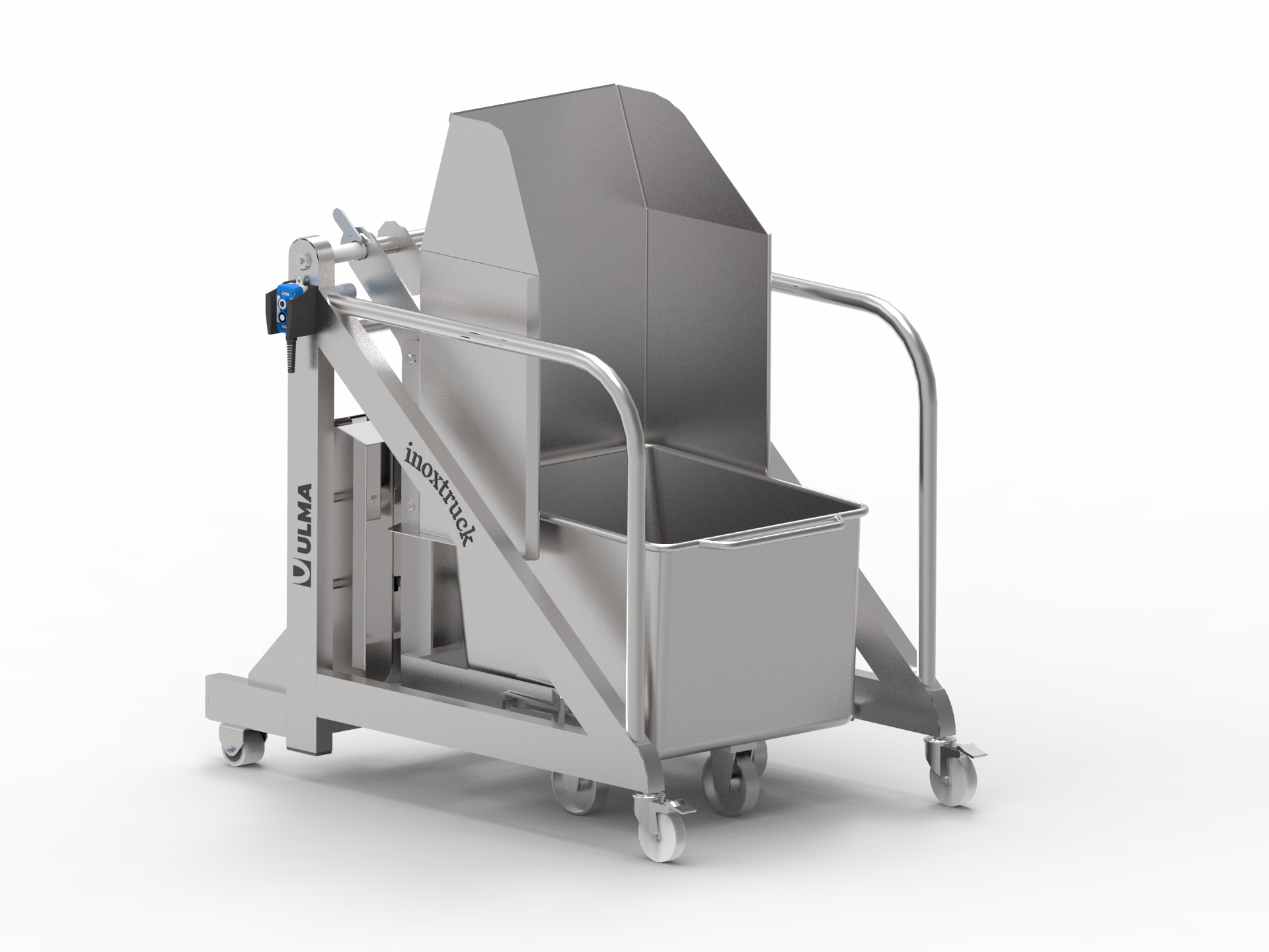 Inoxtruck tilters are similar to drum tippers and allow an ergonomic handling/tipping of loads, thanks to the tilting system up to 130º. This equipment has an innovative design for eurobin trolleys that makes the handling process safe and ergonomic. Tipping and loading onto conveyor belts or other containers whilst always complying with lifting and handling regulations. Their hygienic design makes them the perfect solution for harsh environments. Clean the units thoroughly, to maintain hygiene standards, without the fear of damage