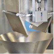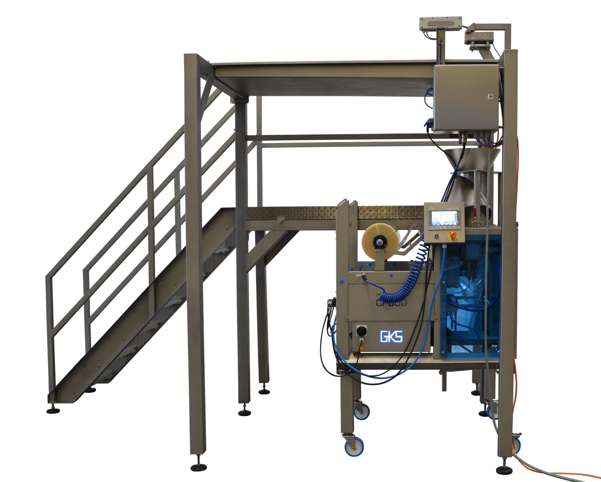 The stainless steel platform is adapted to the height of the packaging machine and is equipped with safety kick plates and railings. The mixing table, with the integrated single head weigher, is arranged in ergonomic height and easily accessible by stairs. The large 16 liter volume weighing bucket is perfectly suited to weigh all kinds of products. We also have a wide range of lifting and handling solutions to transfer products up to the weighing area. (mobile lifting device).