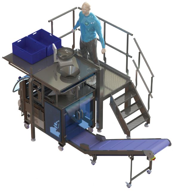 Packstation is a modular platform with working space. Various types of packaging machines can be placed beneath the work surface. The system is designed for either manual or semi-automatic production. The Packstation’s modular construction allows it to be set up in various ways to create the optimal working situation.