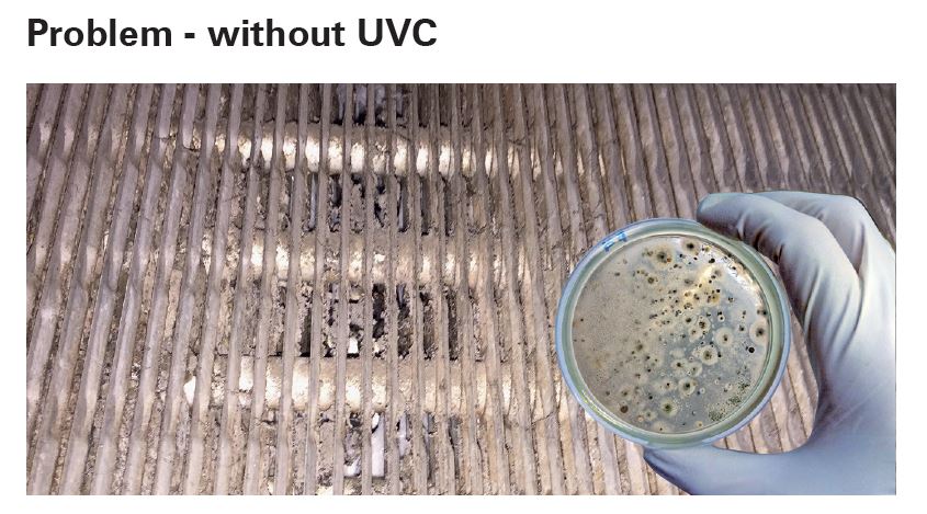 Air conditioners and fans are often affected by biofouling due to condensate.