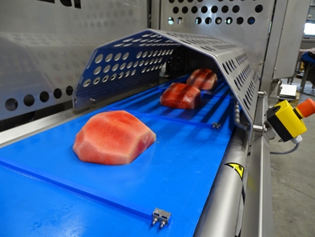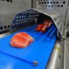 The Watermelon Dicer cuts twelve halved watermelons per minute into cubes, for example in 25 x 25 x 25 mm. The halved fruits are placed manually on the conveyor belt and transported into the machine. Product is cut cleanly and consistently into cubes. The watermelon dicer machine is safe, hygienic and robustly designed and manufactured and will automate a highly labour intensive process.